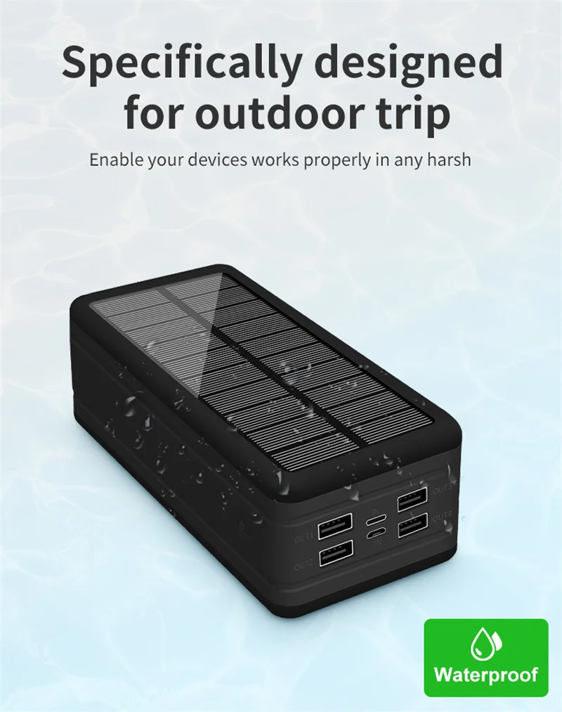 remind: solar charging is an additional feature. Due to the small panel size, large capacity and uncontrollable sunlight intensity, the solar charging option can be used as a backup solution, while other power sources are not available. Make sure the external battery is fully charged before traveling.