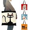 Cartoon Animal Cat Print Tote Bag For Women Folding Reusable Shopping Bags Linen Handbags Pouch