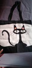Cartoon Animal Cat Print Tote Bag For Women Folding Reusable Shopping Bags Linen Handbags Pouch