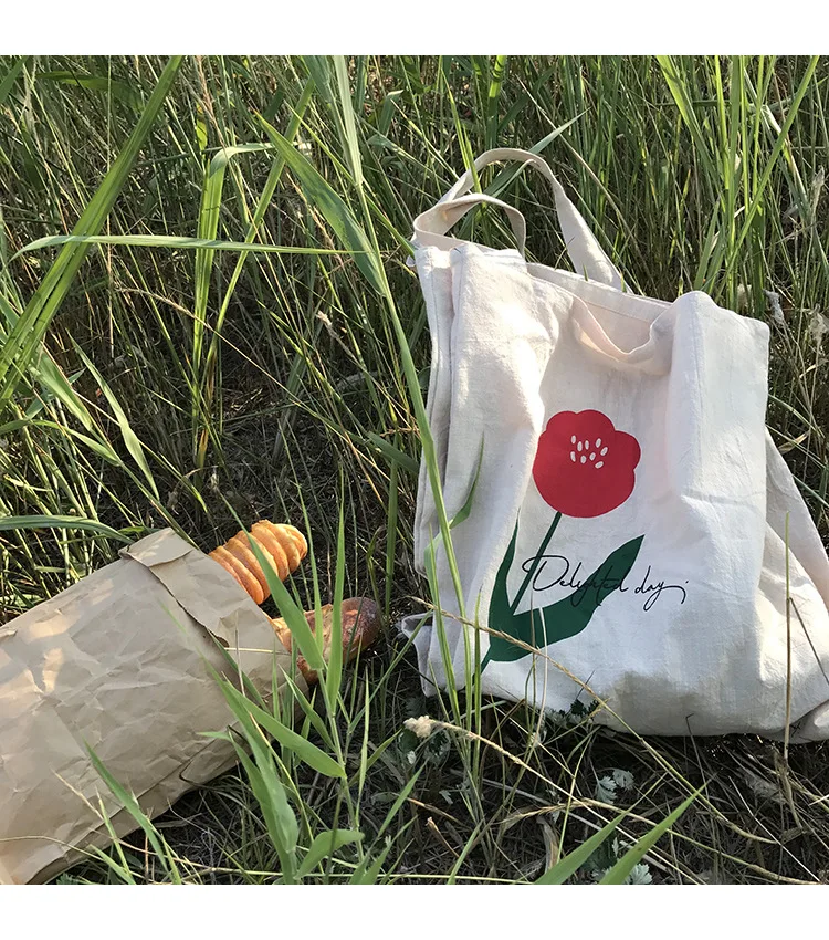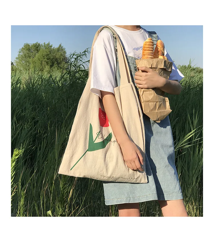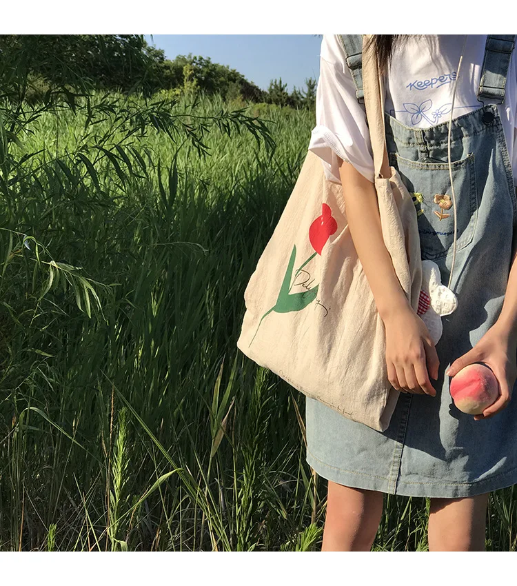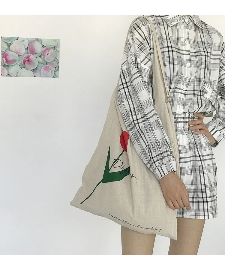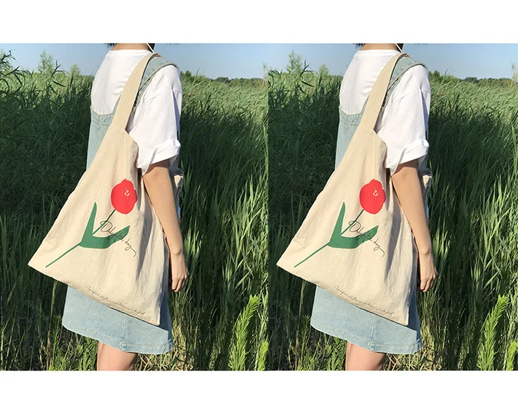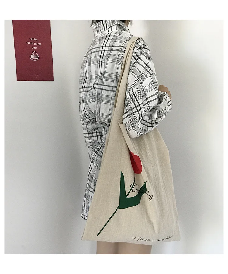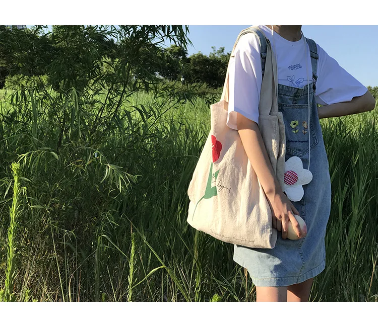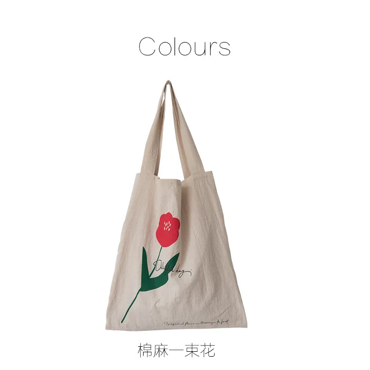 Cotton Linen Canvas Women Handbags Fashion Flower Ladies Eco Reusable Shopping Bag Large Capacity Female Shoulder Bags Tote