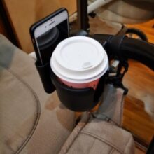 The holder fits baby bottles and larger cups, including my daughter’s 16 oz Tervis Tumblers. Time will tell how long the silicone pieces hold up. I am not a fan of the phone compartment. I just do not want to put my smartphone so near a cup of liquid. Plus, there is also a chance of a kiddo grabbing the cup and accidentally knocking the phone out. Bottom Line: If you need an extra cup holder, it is a good option to consider, but use the phone compartment at your own risk.