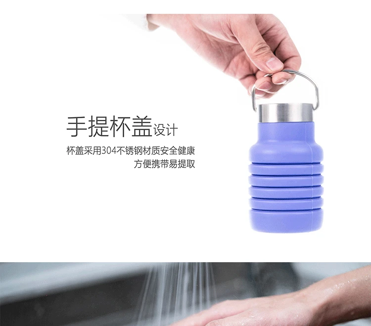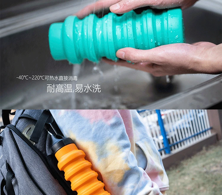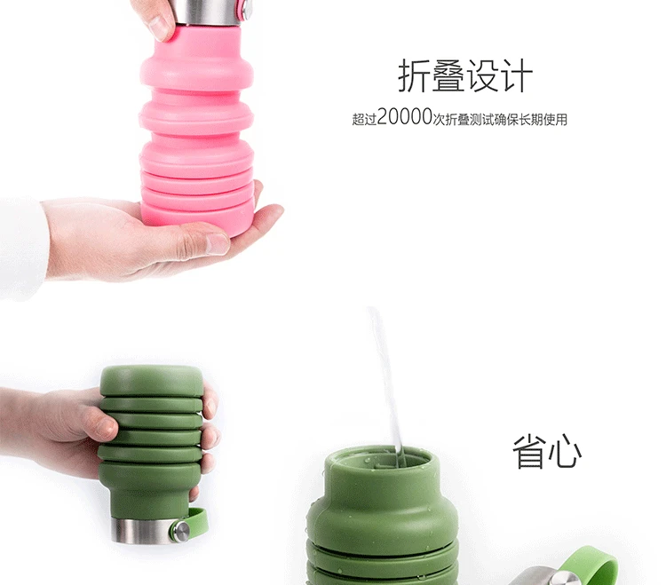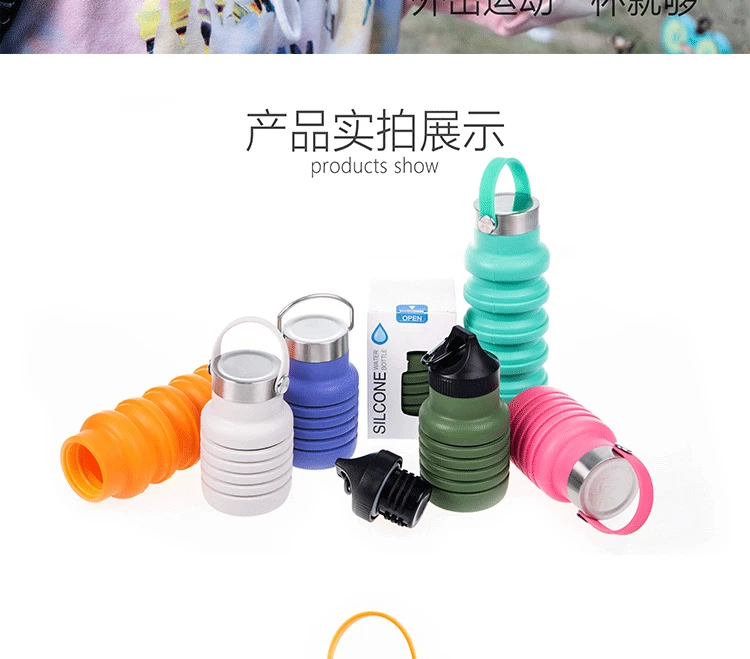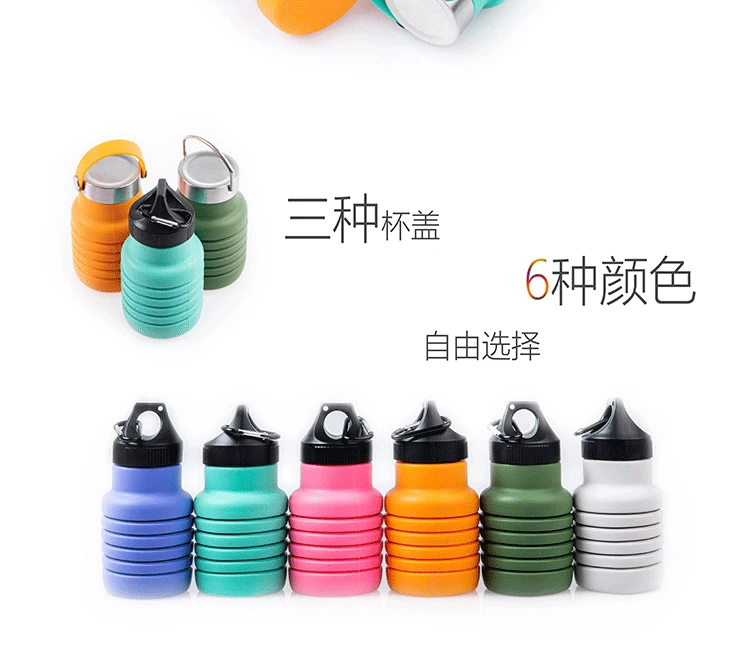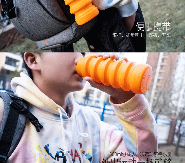 Fitness Silicone Sports Water Bottle 500ML Folding Water Cup Outdoor Travel Portable Leakproof Drinkware Drink Bottle BPA Free