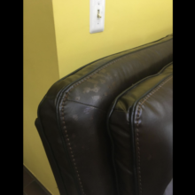 I should have taken a before photo so I could show the difference but I didn’t. We had one big tear in our “pleather” sofa as well as many scratches and small holes. Most were made by our cat walking on the couch and her nails just made little pin holes. The tear was about the size of a quarter and was caused by a bug spray coming in contact with the couch and delaminating it. I have to say, this product does a better job fixing large holes/tears than small. Our couch is chocolate so I used the black. I also did’t need the patch material. Applied one coat, gave about an hour to dry then reapplied. You can’t see the big hole unless you look for it. so much better than before.