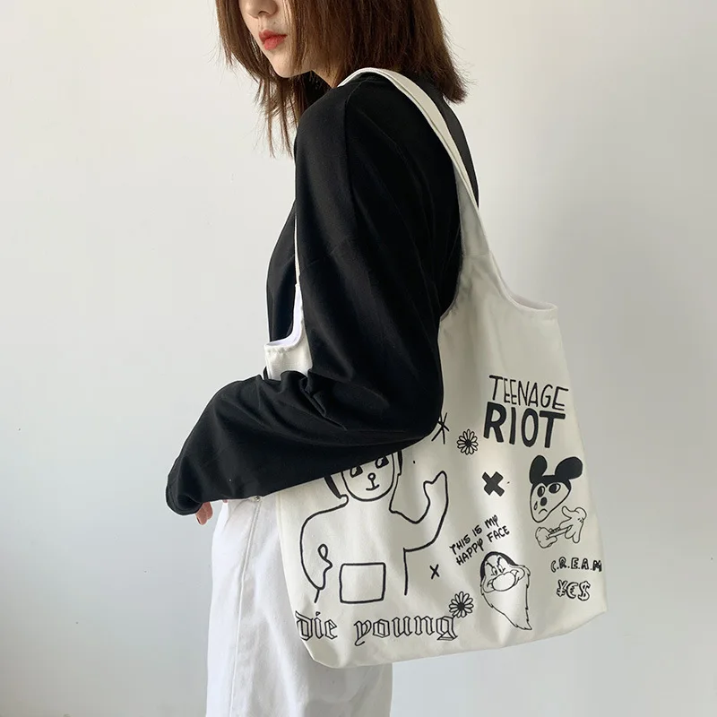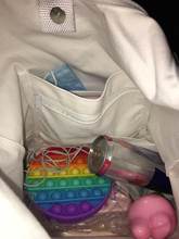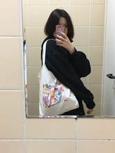 The order was made on 2.11.2020 and came already on 19.11.2020. The bag is excellent, everything is very well stitched, do not stick out the thread, the fabric is white, the picture is not a sticker!!! She is roomy, if you want to take to school, then I will immediately say-the textbook of English fits completely, even remains a place to not close with the help of a magnetic button (the first photo, inside the textbook and the handbag itself is closed). The button is not attached very reliably, but so far this problem has not caused. Inside there are two pockets. 2 large enough, the length of the passport fits, the second one with a zipper (second photo). Thank you very much to the store!!!! <3