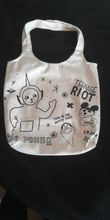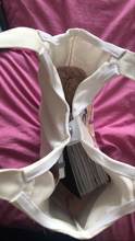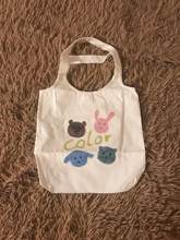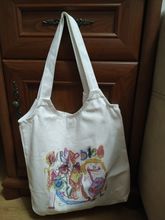 Shopper of good quality, dense material, by the type of burlap, not long handles, inside a pocket with a zipper, a button-fastener. The picture is not a sticker, I think, when washing will not be erased. No smell. The goods came quickly. My daughter is happy. Recommend.