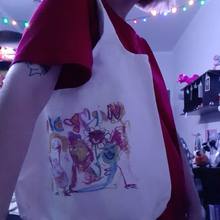 шопер пришёл быстро, вместе с другим заказом. качественный, явно меньше чем на фото, но ноут влез, а это уже успех. запаха не было, но в некоторых местах была грязь, поэтому пришлось постирать. рисунок качественный, после стирки ничего с ним не случилось. в целом – очень довольна покупкой, рекамендую~