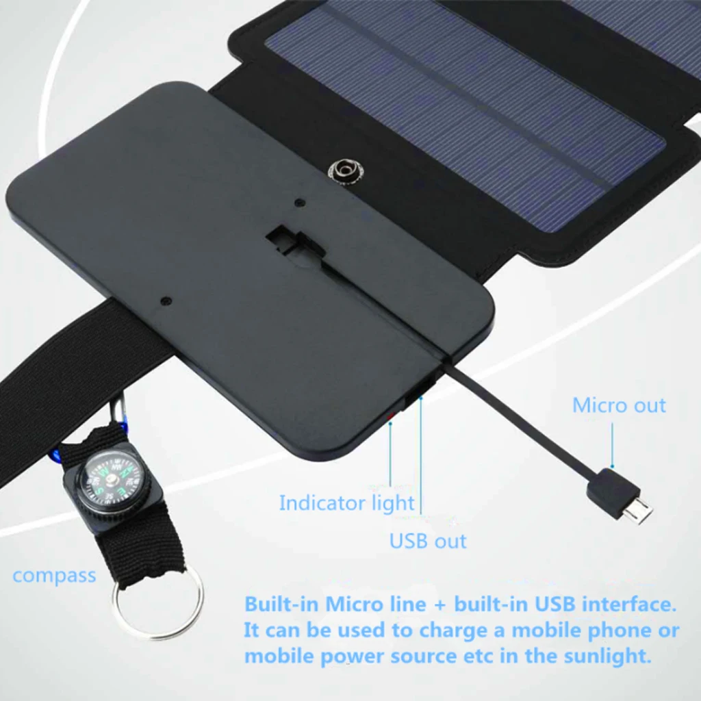 charger: solar panel 4 folding is 8W, 5 folding 10W.